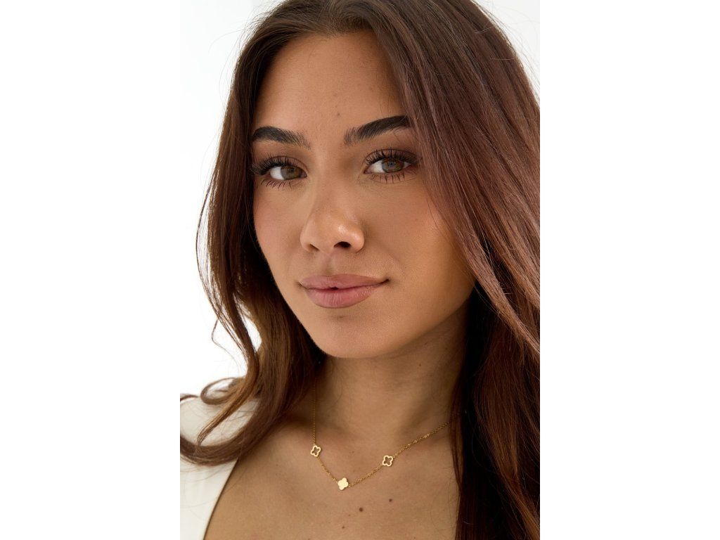 Jemný náhrdelník z chirurgické oceli ozdobený třemi jednoduchými tvary čtyřlístků. Něžný šperk pro každou ženu.