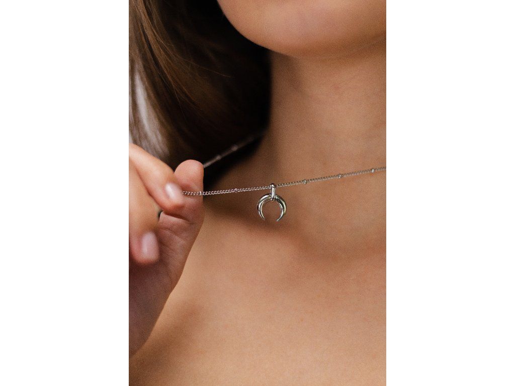 Máte hlavu v oblacích a něžnou duši romantičky? Pak si tento originální náhrdelník z chirurgické oceli s přívěskem ve tvaru měsíce zamilujete. Decentně zdobený řetízek je velmi módní a společně s originálním přívěskem dotváří jedinečný vzhled tohoto dámského šperku.
