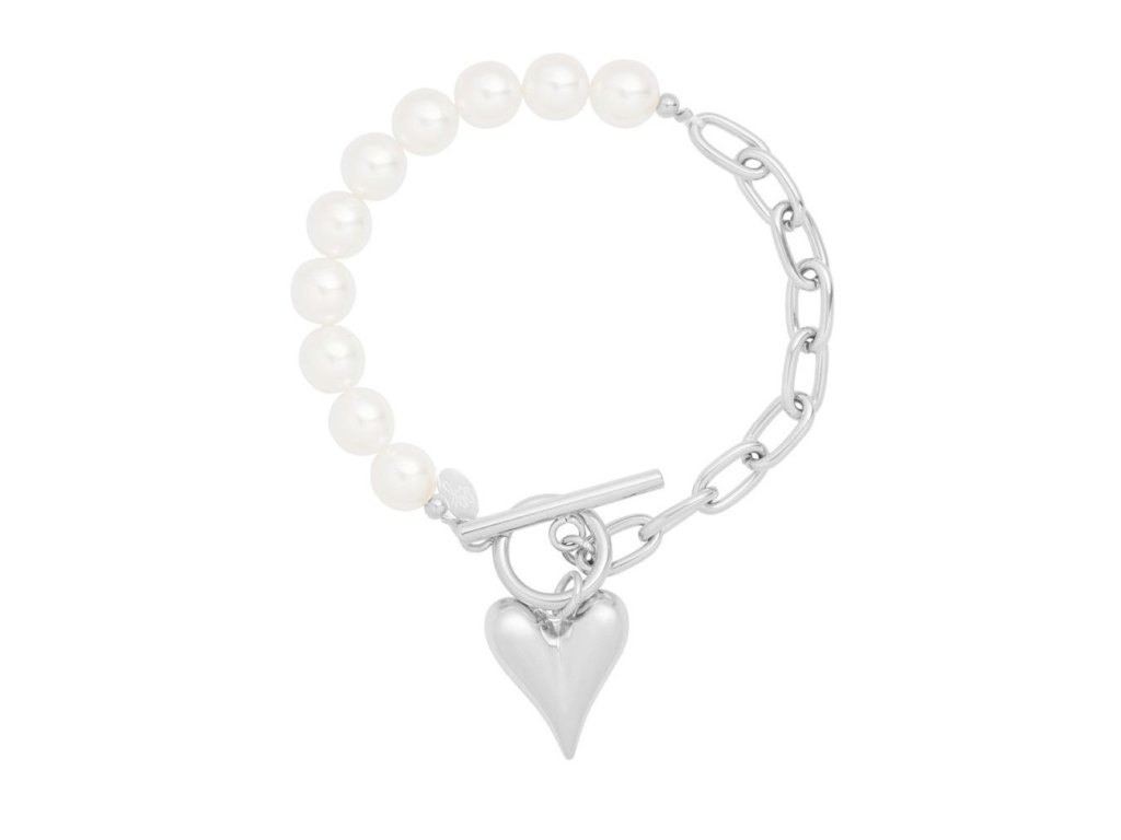 Pozlacený náramek z chirurgické oceli s perlami a srdíčkem. Chirurgická ocel je pozlacená 18k zlatem. Elegantní a nepřehlédnutelný náramek pro každou příležitost. Podtrhne jednoduchý outfit a dodá všem ženám sebevědomí. Náramek bude pěkný v kombinaci s dalšími náramky.