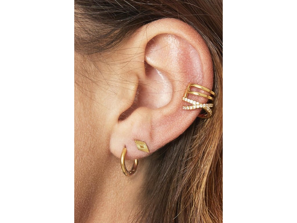 Pozlacená náušnice na boltec ve tvaru spirály z chirurgické oceli. Náušnice vypadá velmi elegantně a dodá na zajímavosti s dalšími náušnicemi.