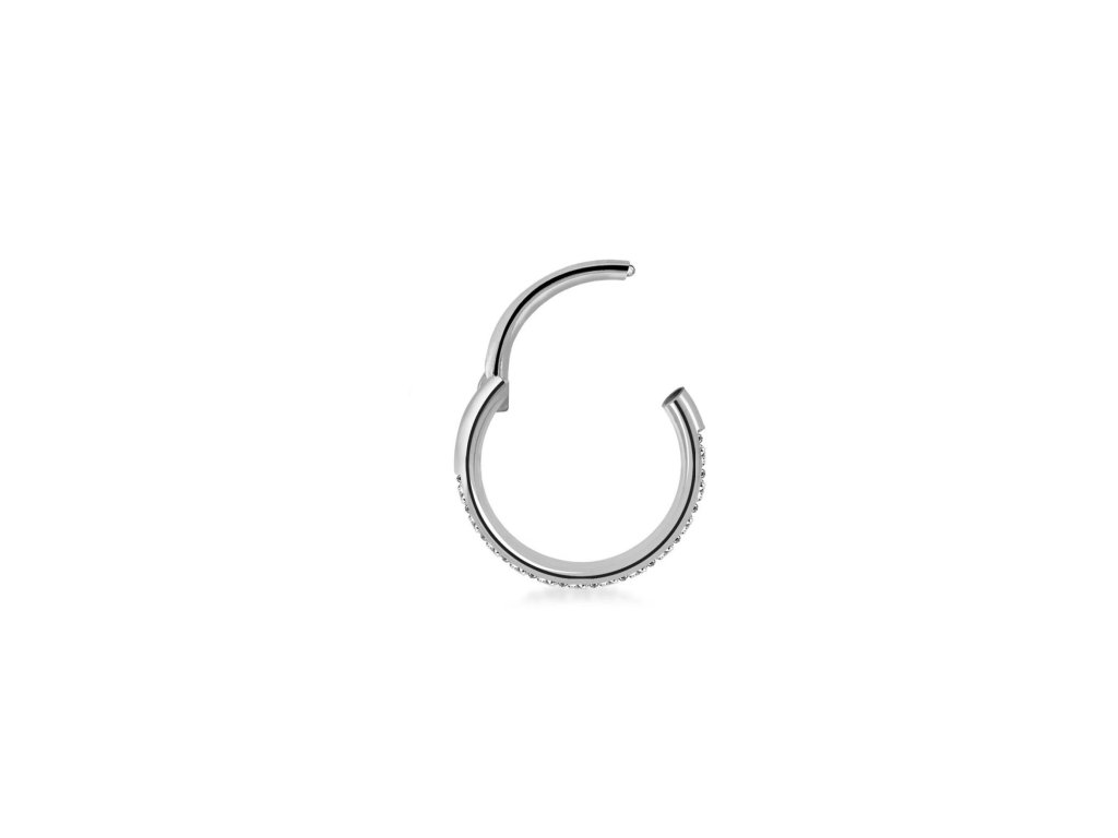 Stylový kroužek do nosu s otevíracím kloubem a drobnými zirkony.