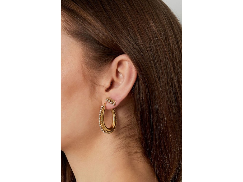 Třpytivé oválné náušnice z chirurgické oceli pozlacené 18k zlatem a osázené čirými zirkony. Symfonie krásy, která rozzáří váš den.