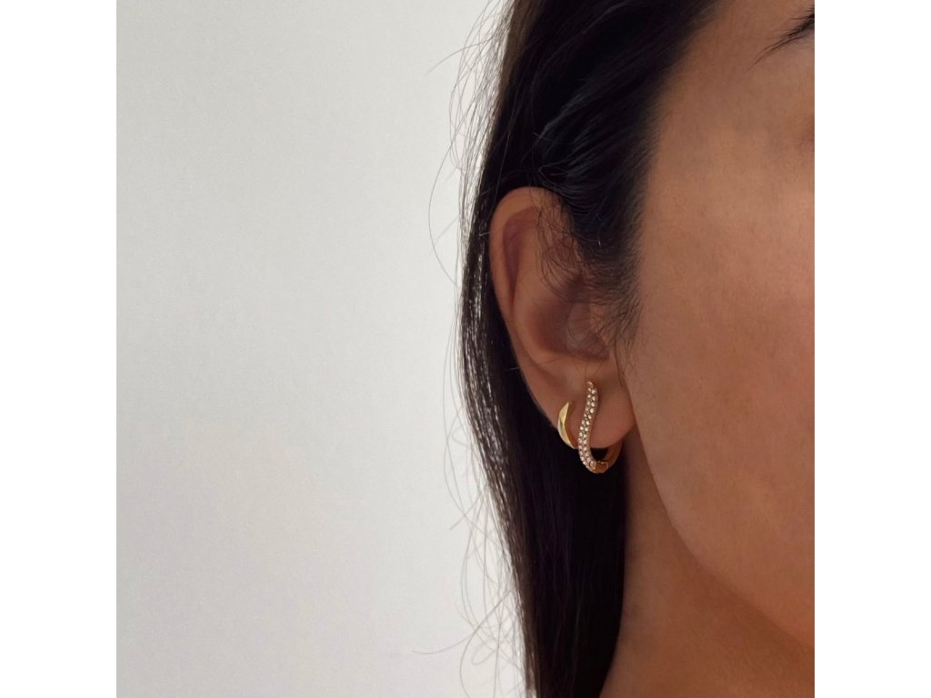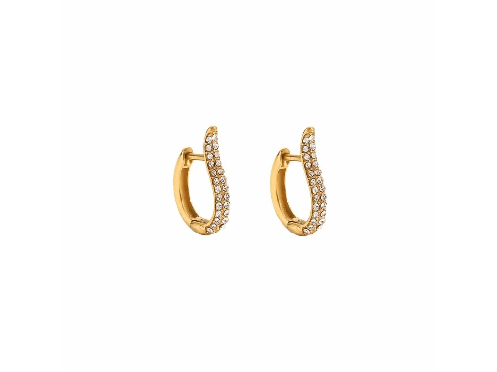 Oválné pozlacené náušnice s čirými zirkony a zajímavým designem. Elegantní pozlacené náušnice z chirurgické oceli padnou každé ženě. Náušnice jsou pozlacené 18k zlatem. Nepřehlédnutelný nadčasový šperk osázený čirými zirkony doplní každý módní outfit. Z jedné poloviny jsou náušnice zdobeny třpytivými zirkony, z druhé poloviny jsou hladké. Ať se chystáte na večeři nebo pracovní schůzku s tímto dámským šperkem budete neodolatelná.