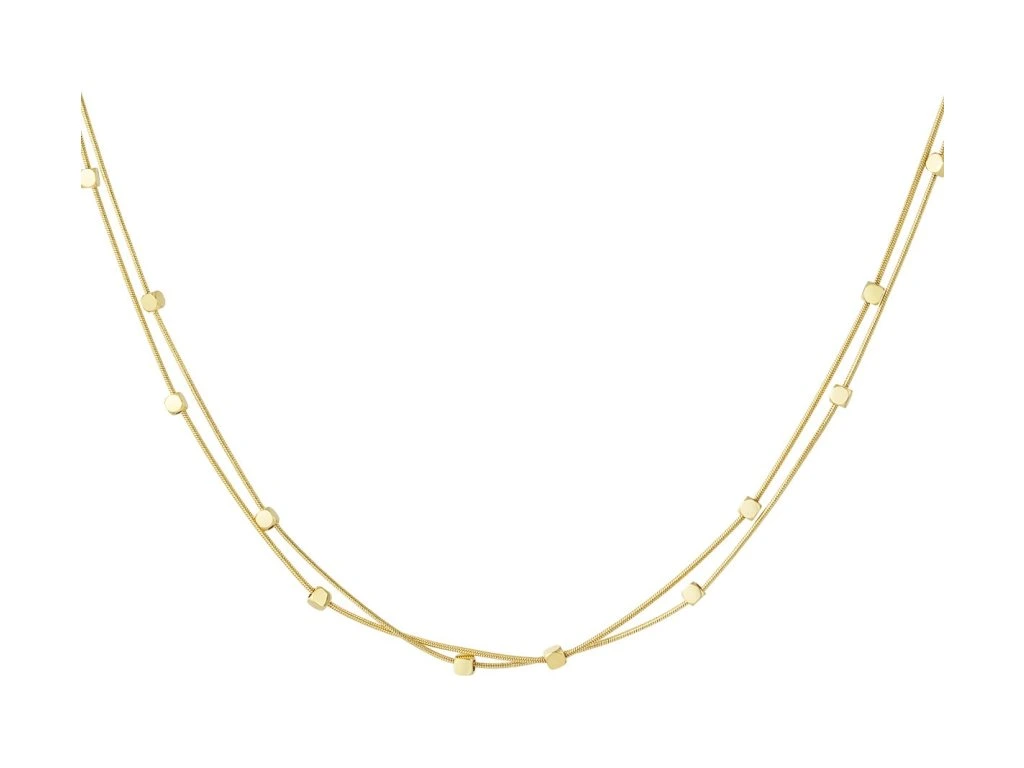 Jemný náhrdelník z chirurgické oceli je pozlacený 18k zlatem. Decentní náhrdelník se díky svému jemnému designu hodí pro každou příležitost a dobře se doplňuje s dalšími náhrdelníky různých délek.