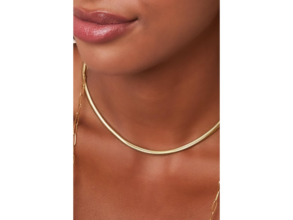 Tento nevšední náhrdelník z chirurgické oceli s povrchovou úpravou z 18k zlata ocení všechny ženy, které mají vytříbený styl a chtějí si dopřát výraznější šperk. Náhrdelník připomíná hadí pohyb, a tak je na dámské šíji opravdu nepřehlédnutelný. Ozdobte se tímto krásným kouskem, když jdete do společnosti nebo na důležitou obchodní schůzku. Budete středem pozornosti!