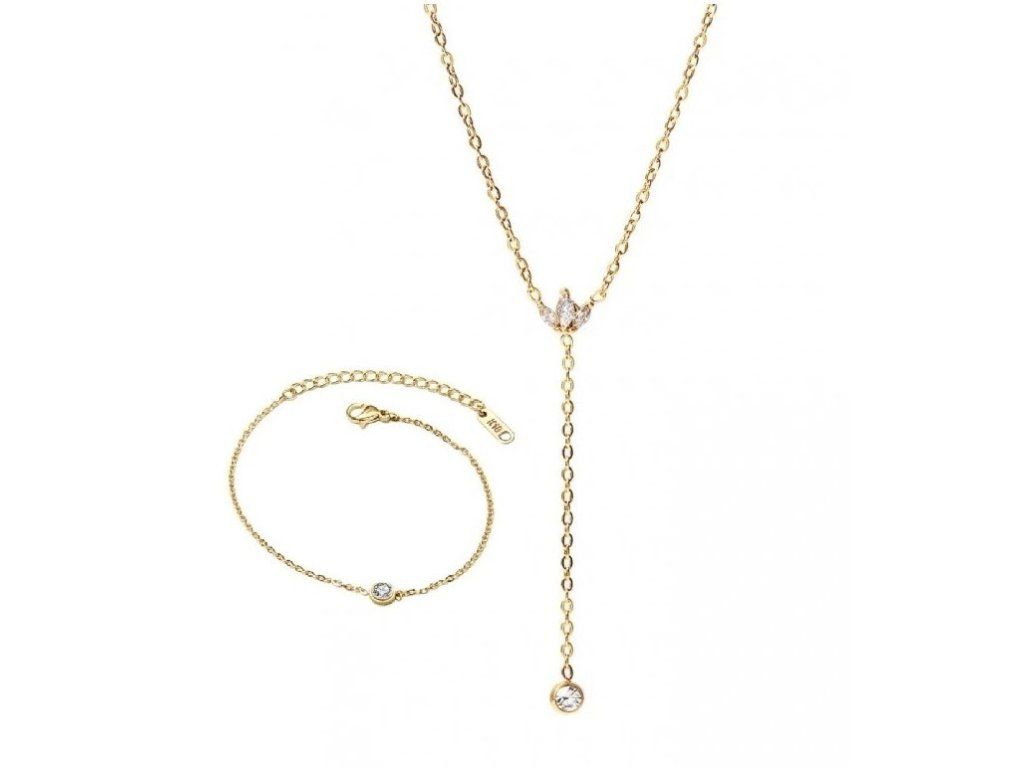 Pozlacený set náhrdelníku a náramku Lariat gold